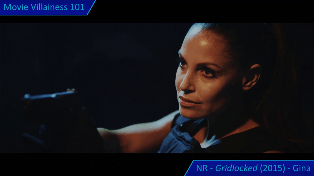 After pretending to be heroic all film, the greedy woman betrays her fellow officers for… yes, money. She frames an innocent cop as the mole and explains her motives before she bumps him off. After Gina’s reveal and failed attempt on the actor’s life, a brutal fight ensues. This tough woman shrugs off attacks that would fell lesser foes, including a gunshot to the face. But the unlikely hero gets the better of the treacherous cop, and a second headshot proves decisive.