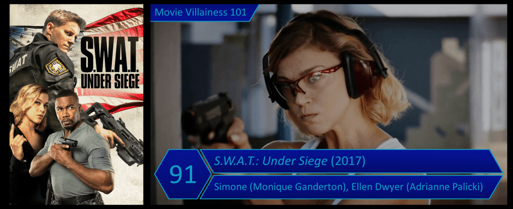 And indeed there is, although there are two traitors on the S.W.A.T. team (and that tired excuse of police work not paying well), with the caller revealed to be male. A clever subversion of the expected trope, but don’t get too disheartened because the final villain is a woman. The subplot mystery of who’s feeding the baddies information works well, maintaining the tension in between the frantic action.