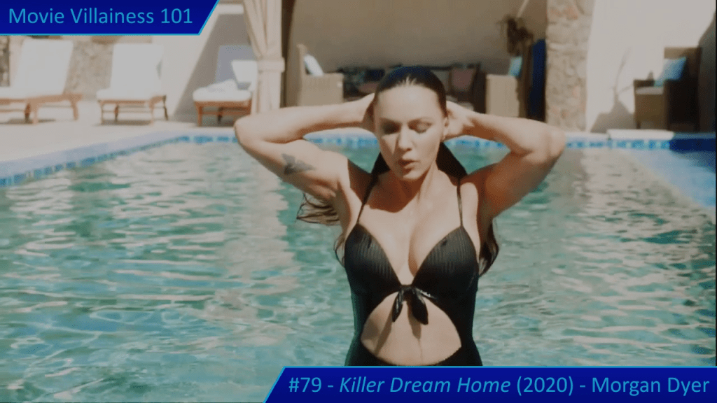 Morgan really wants her dream home: a lavish mansion with exquisitely decorated rooms, a swimming pool, and even an elevator. As the movie title suggests, she’s prepared to kill for it. So, she breaks in and drowns the owner in her bathtub. Lunatic Morgan wears a red raincoat instead of the traditional black hoodie favoured by Lifetime villains. Points for originality straight from the outset.