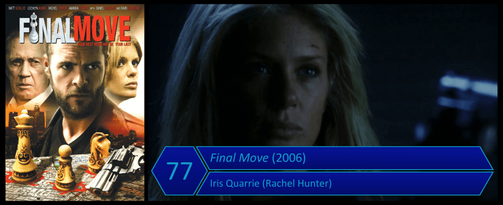 Chess-themed serial killer movies have been done before, but Final Move adds a paranormal element. Psychic Dan Marlowe (Matt Schulze) assists Detective Krieg (Lochlyn Munro) with his investigation. It appears someone is copying the recently executed “Chess Piece Killer” Thomas Page. Marlowe previously identified him from a vision, but did he make a mistake? Cue lots of murders as the duo go on a psycho hunt, and – yes – a city map is used as a chessboard. Why does that always happen?