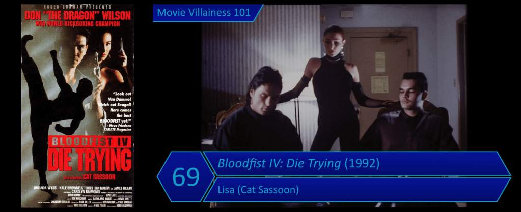 This 1990s action flick stars Don “The Dragon” Wilson, a B-movie regular who often headlined mid-budget productions. Several of his films featured female villains, though most were forgettable. The henchwomen were usually defeated easily with little screen time, so this entry in the Bloodfist series is a welcome exception.