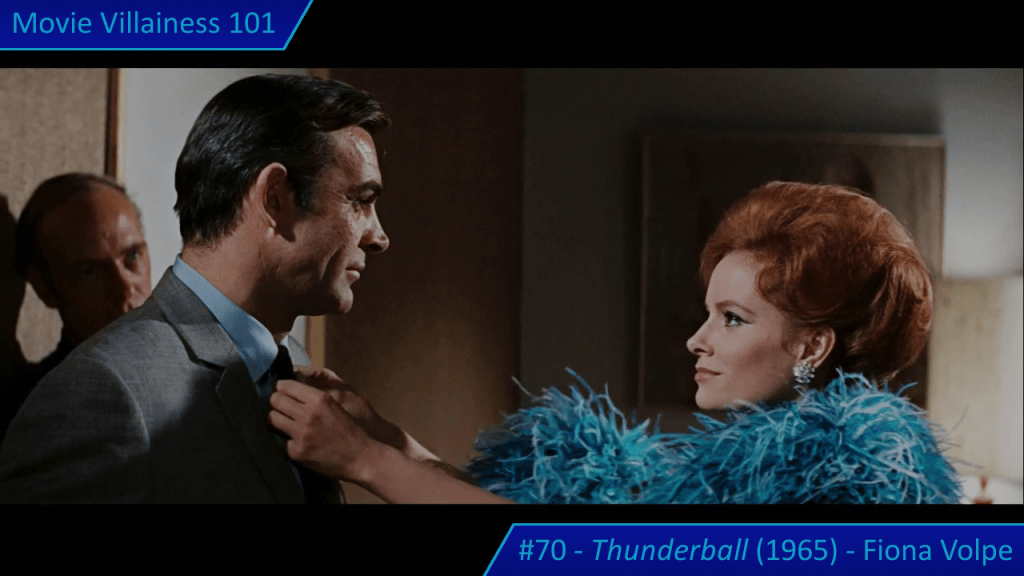 If I ranked my favourite female villains, there could easily be half a dozen entries from the Bond franchise. Since I’m aiming for balance, I’ve chosen four “headliners” and will cover the other films as honourable mentions and discussions. Fiona Volpe is my lowest-ranked pick, and this review also summarises the Sean Connery Bond films and George Lazenby’s solo outing.
