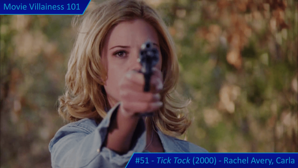 When the schemers attempt to frame Travis again, he’s ready and waiting with a revolver. Carla feigns an argument to gain the advantage, but Rachel’s patience with her co-conspirator runs out and she shoots Carla fatally in the chest. The finale has Rachel escorting the handcuffed Travis through the woods at gunpoint, only to find the gun she stole from the detective is faulty.