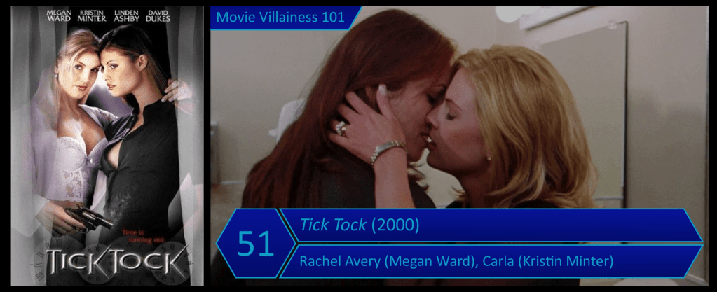 Most films in the 1990s and 2000s that featured lesbians had them be villainesses, and this twisty thriller is no exception. Tick Tock has a novel storytelling mechanic: a plot twist, time rewinds to an earlier point, and we witness events from another character’s perspective. The result is a cleverly evolving story set in Bakersfield, California.