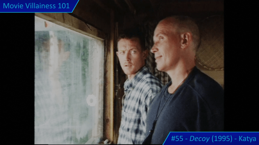 To show how ruthless she is, Katya offs a mole in Wellington’s camp with a high-powered automatic rifle. That weapon is useful for clearing dense forestry, and during the prolonged chase that follows. Katya is a female villain with plenty of screen time who prefers violence to talk, though she makes a few snide comments in a posh English accent. Some of her combat tactics are questionable. She often stands in the open and makes herself an easy target, but the chief henchperson is immune to return fire.
