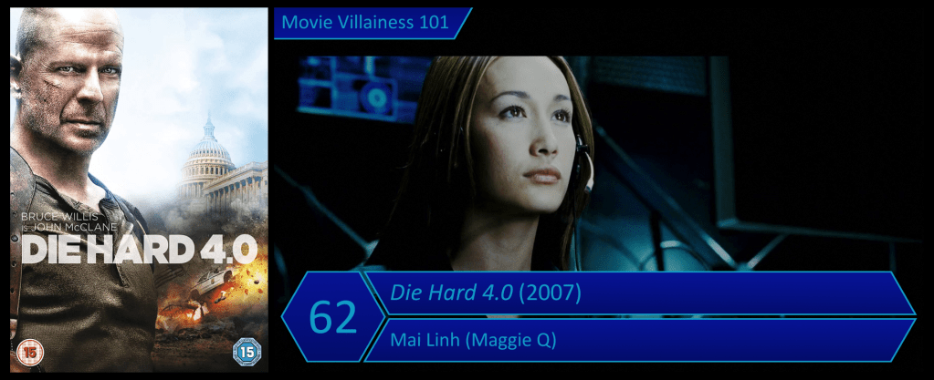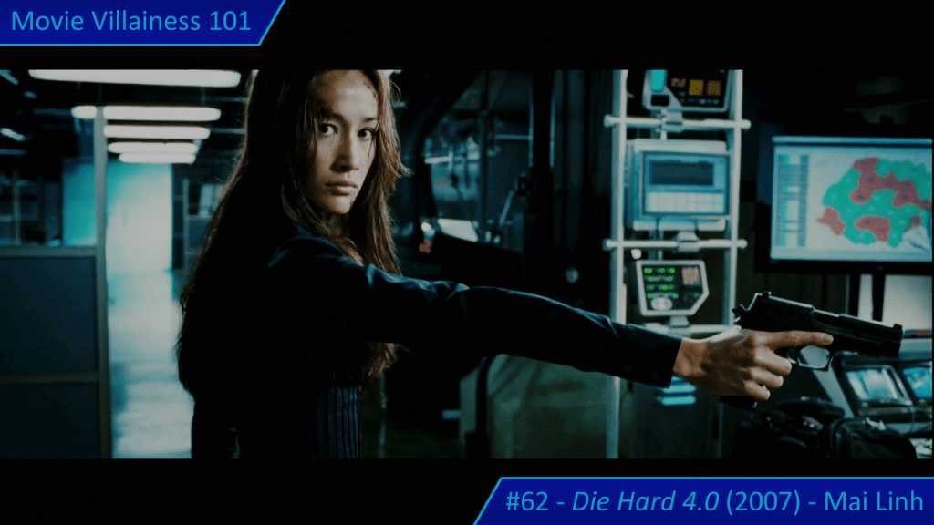 The female villains in the third and fifth instalments had their moments, but their contributions were disappointing. And while the bad girl in 4.0 is seen off 60% of the way through, the Asian hacker and martial arts expert Mai Linh is the most formidable of the bunch. Plus, she proves very hard to kill, which is always a bonus.