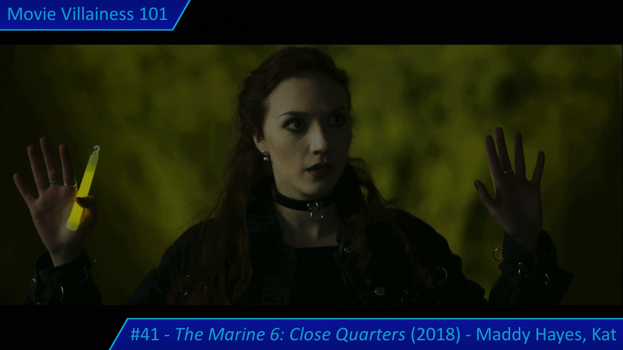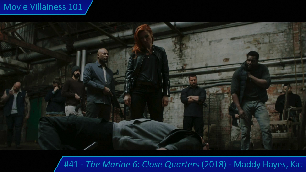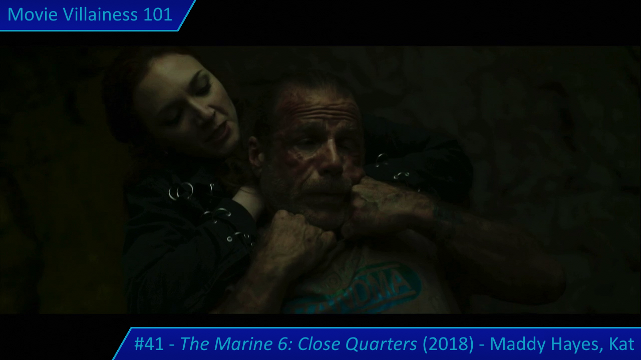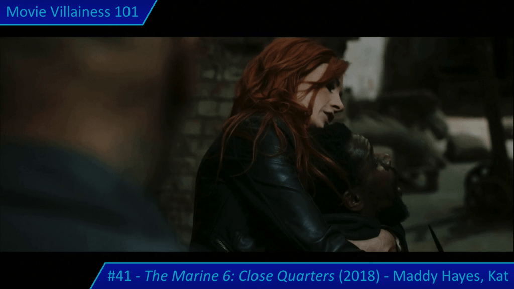 In the opening half, Maddy murders a civilian showing the ex-marines around, and one of her own men for failure (despite following her orders not to use weapons). The brutal knife executions establish Maddy’s authority as the primary villain and her preference for close-quarters combat, perhaps an allusion to the title.