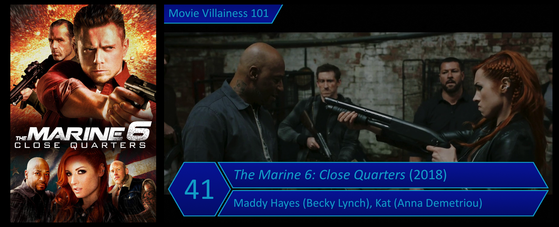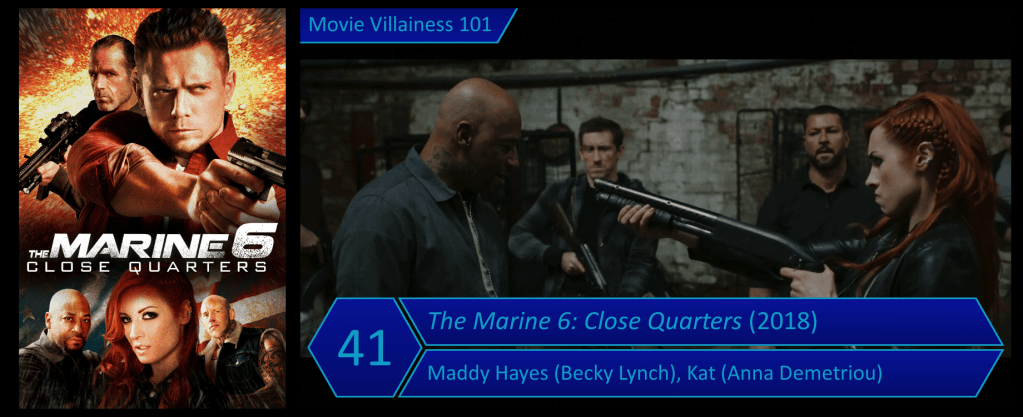 This WWE-produced franchise has a high inclusion rate for female villains. Six Marine films were made altogether, and four have a bad girl in the cast. For the last outing, we finally got a woman as the main antagonist. If Becky Lynch beating up men isn’t enough, there’s a second female who also gets a lengthy fight scene.