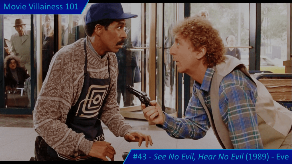 Dave (Wilder) is the deaf owner of a New York news kiosk, and the blind Wally (Pryor) is his new assistant. The pair soon get into trouble – fistfights in a bar and arguments with pedestrians – but their problems get serious after Wally’s bookmaker unloads a gold coin… shortly before he’s bumped off by Eve. Wally hears the gunshot and smells the assassin’s perfume as she makes her getaway. Dave sees the killer – and her legs – from behind. Naturally, the pair get arrested at the scene, but not before Wally unknowingly collects the coin.
