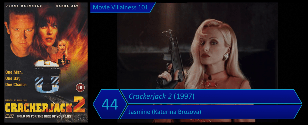 Sequels often feature better female villains than the original, and that’s the case here. Crackerjack (1994) was basically Die Hard at a mountain ski resort, with Christopher Plummer doing a rather meek Hans Gruber impression as German baddie Ivan Getz. The villain and his trigger-happy mercenaries occupy an entire mountain just to get their hands on a repentant mob boss’ diamonds. Surely there’s an easier approach to getting rich.