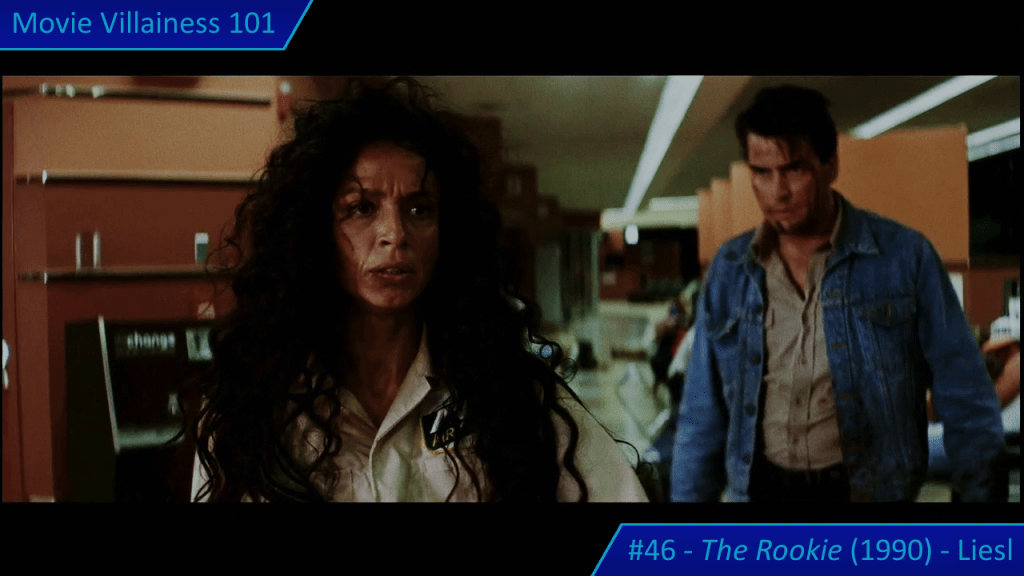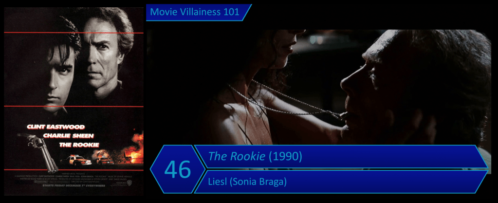 There are attempts at character development around Ackerman: flashbacks to a childhood accident that killed his brother, and his wealthy father’s lack of support. These are all secondary to the action, however. Memorable scenes include a trailer truck chase in the prologue, an unlikely escape by driving a car through a high window to escape an explosion, and a climactic shootout at an airport terminal. Braga’s bad girl lasts the distance, so there’s plenty for female villain fans to enjoy.