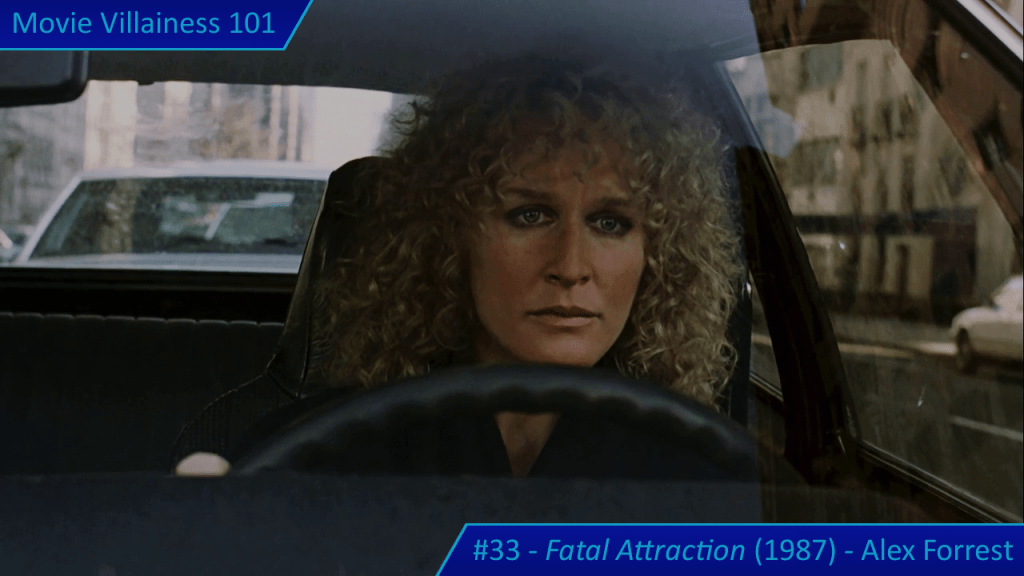 After Alex shows up at Dan’s apartment pretending to be an interested buyer, he finally snaps and goes over to her place. That’s when Close delivers her famous line of dialogue: “I’m not going to be ignored, Dan!” (as if she needed to tell us that). The best part of the movie has Alex in full stalker mode. She wrecks Dan’s vehicle by tampering with the radiator, then tails him to his new home in upstate New York. To keep him occupied en route, Alex leaves him an audio cassette (remember those?), full of pre-recorded ramblings about their relationship.