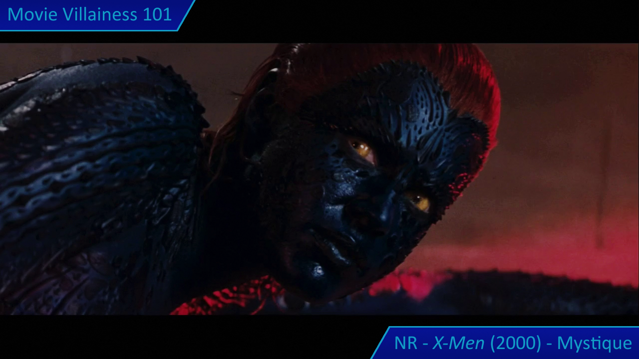 The villain plans to transform prominent humans into mutants, and his henchmen are the whip-tongued Toad (Ray Park), dumb muscle Sabretooth (Tyler Mane) and Mystique. She’s as acrobatic as Toad and can change her appearance at will. This includes copying Wolverine’s claws for an epic fight, but Mystique remains in her natural blue-skinned form where possible. Her best scene is where she reveals herself to an anti-mutant senator and gives him a good kicking. Not one for diplomacy when defending her kind.
