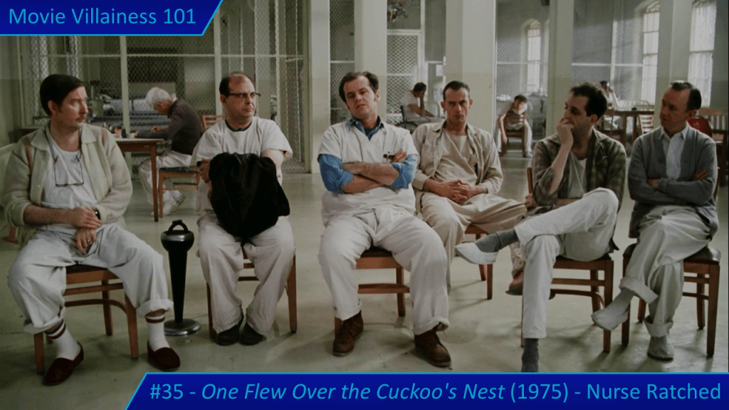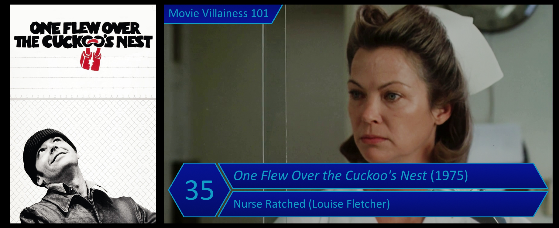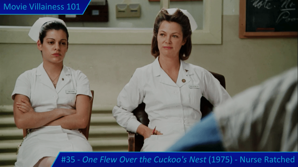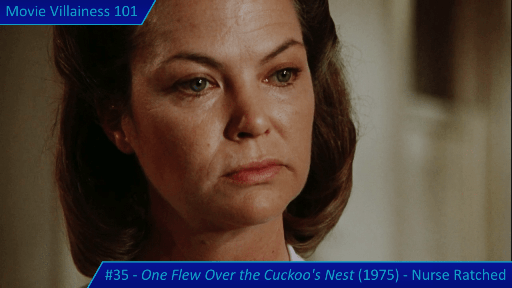 Perhaps a controversially low rank, given many female villain lists rate the tyrannical nurse highly, but I consider all the top forty choices to be legendary. The film is undoubtedly a classic, one of only three (to date) to win all five “big” Academy Awards. A lot of time is devoted to patient bonding, and the antagonist is the corrupt US mental health system, even if Nurse Ratched makes a terrifying figurehead.