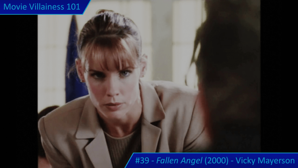 Vicky then turns her attention to Brian. We all saw this coming, right? The finale has Laura confront the murderer on the roof and repeat the prologue “offer to shoot the hostage” trick (which actually works!). Unfortunately, Brian falls for it too, which gives Laura’s plan away, and Vicky pulls out a second weapon. Brian does the hero thing and takes a bullet for his girlfriend. With the police closing in, Vicky commits suicide by jumping off the roof and becomes the Fallen Angel of the title.