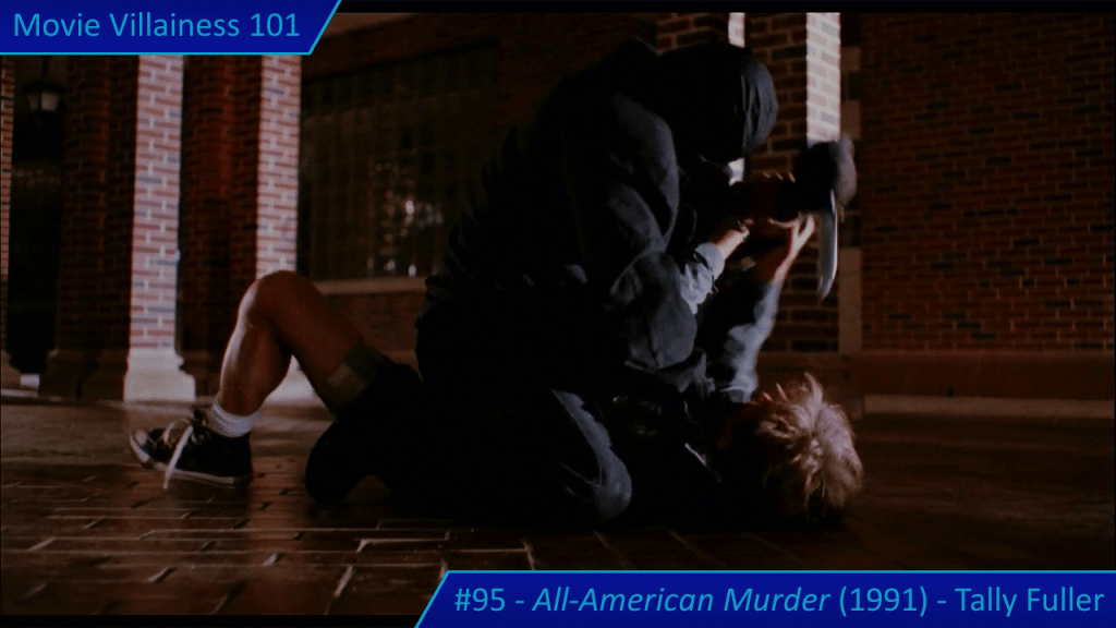 What makes Tally more interesting than most villains, and my reason for including her on the ranking list, is the backstory that unfolds as Artie digs into her past. The image of the perfect all-American girl is eroded over the course of the film, with Tally revealed to be a drug-taking shoplifter who slept with the dean and star football player to get ahead. Most notably, the hero uncovers a videotape of Tally blackballing Wendy (a student helping Artie) out of the sorority and encouraging her fellow pledges to follow suit.