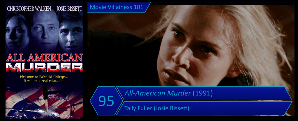 Murder mysteries are tricky to cover as the villainess is not usually revealed until the end, so making the 101 list requires original elements, a great reveal, or a very entertaining movie. The main character of this darkly comic tale is Artie Logan (Charlie Schlatter), a social misfit with a long track record of getting kicked out of academic institutions. When he transfers to Fairfield College, people are naturally wary. Except for the dean’s flirty wife, who quickly invites the newcomer into her bed.